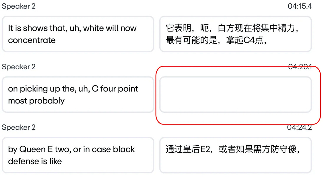 The LLM is doing the right thing linguistically. Four lines of English filler genuinely are one thought in Japanese. But the subtitle system now has four time slots and enough text for one. Three slots go blank while the speaker keeps talking. The German language has a different problem. German places verbs at the end of clauses, creating what linguists call a “verb bracket.” If the subtitle system tries to split a German sentence at a line boundary, the first subtitle hangs grammatically incomplete, missing its verb. The LLM resists producing this because it looks like a syntax error.